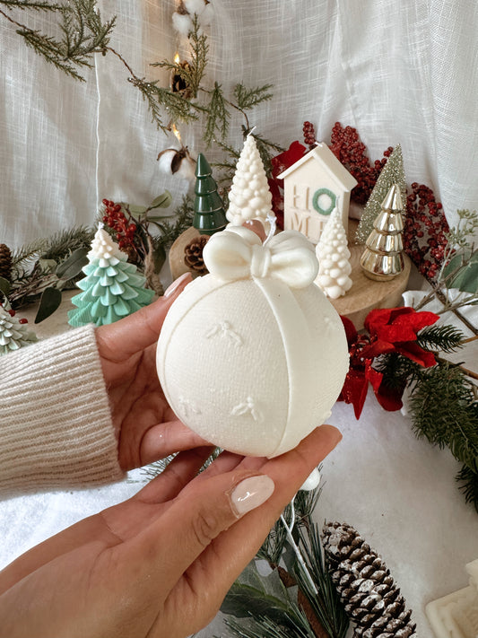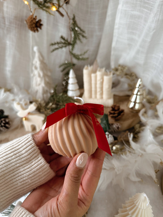Bougie boule de Noël trompe l’œil coloris au choix parfum nougat crémeux