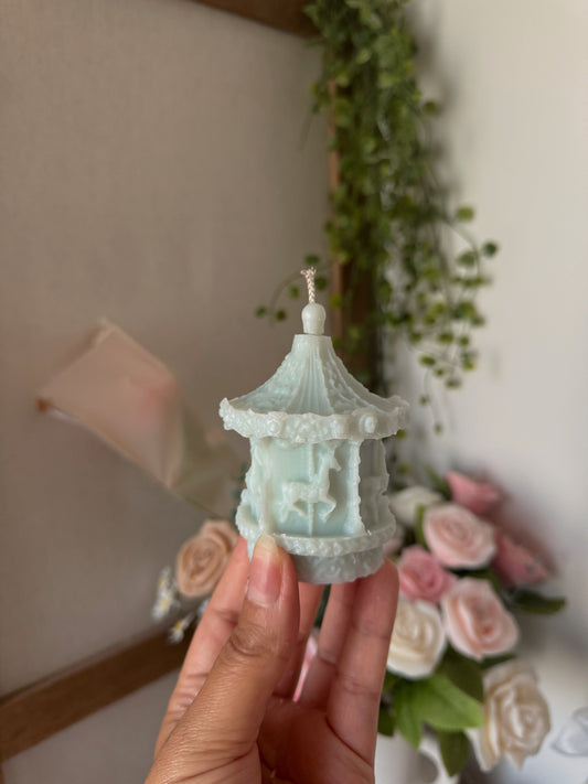 Bougie carrousel fait main en jesmonite cire de soja senteur au choix