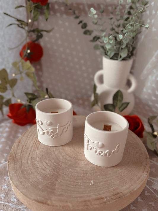 Bougie FRIEND pot fait main en jesmonite et cire de soja parfum au choix