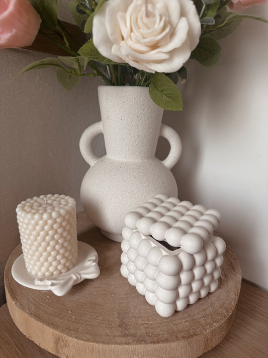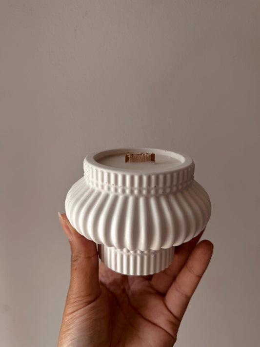 Bougie pot fait main en jesmonite flocon de neige senteur au choix