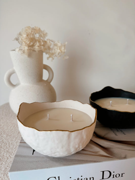 Bougie pot fait main texturé liserés dorés coloris aux choix