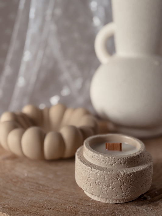 Bougie you&me fait main en jesmonite et cire de soja coloris au choix