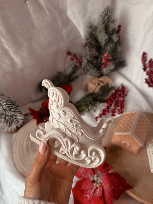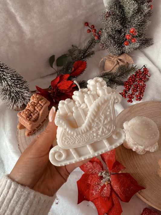 Bougie traîneau fait main en jesmonite senteur au choix