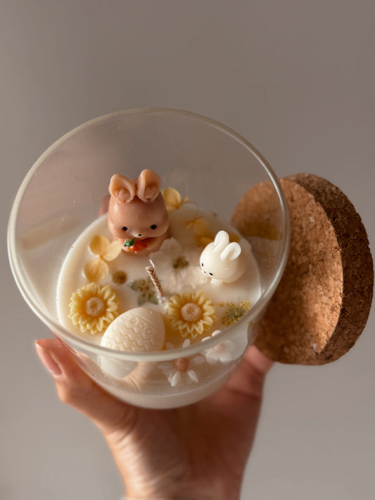 Bougie Lapin dans sa tasse coloris au choix fait main senteur madeleine gourmande