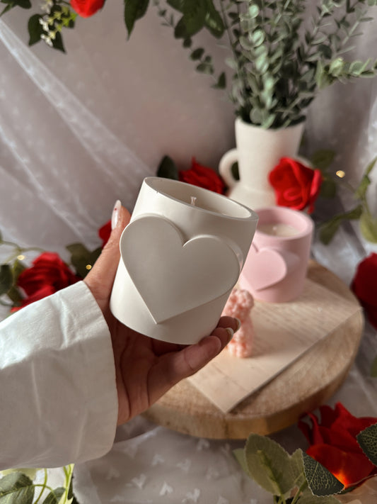 Bougie Love pot fait main en jesmonite et cire de soja coloris au choix