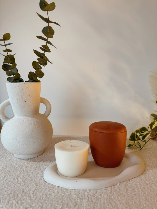 Bougie you&me fait main en jesmonite et cire de soja coloris au choix