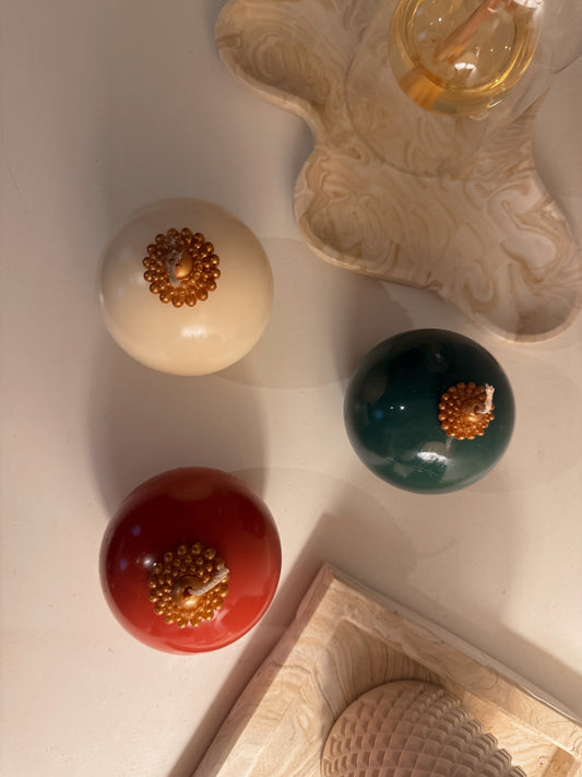 Bougie boule de Noël trompe l’œil coloris au choix parfum nougat crémeux