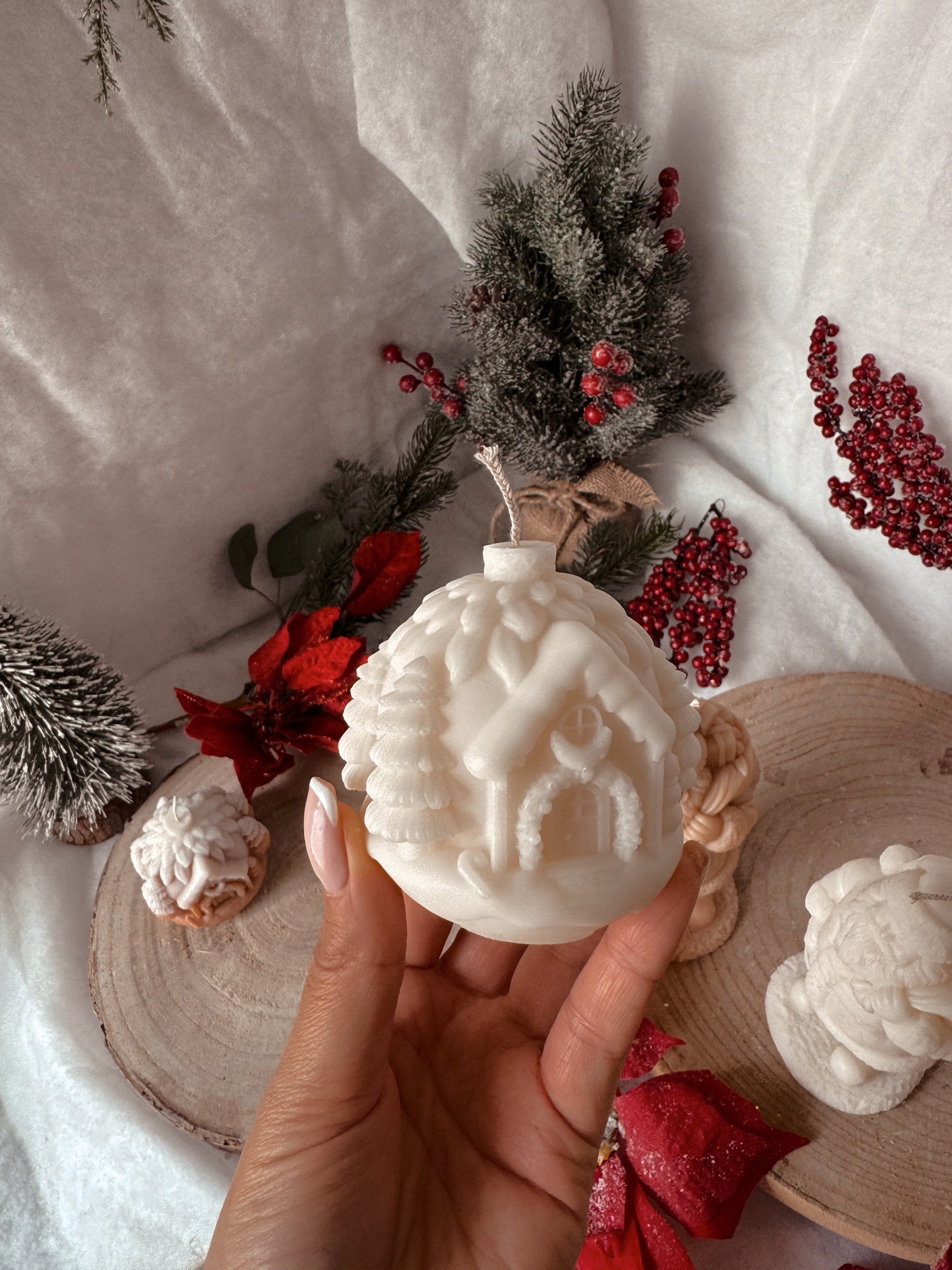 Bougie boule de Noël décorée fait main en cire d’olive coloris au choix