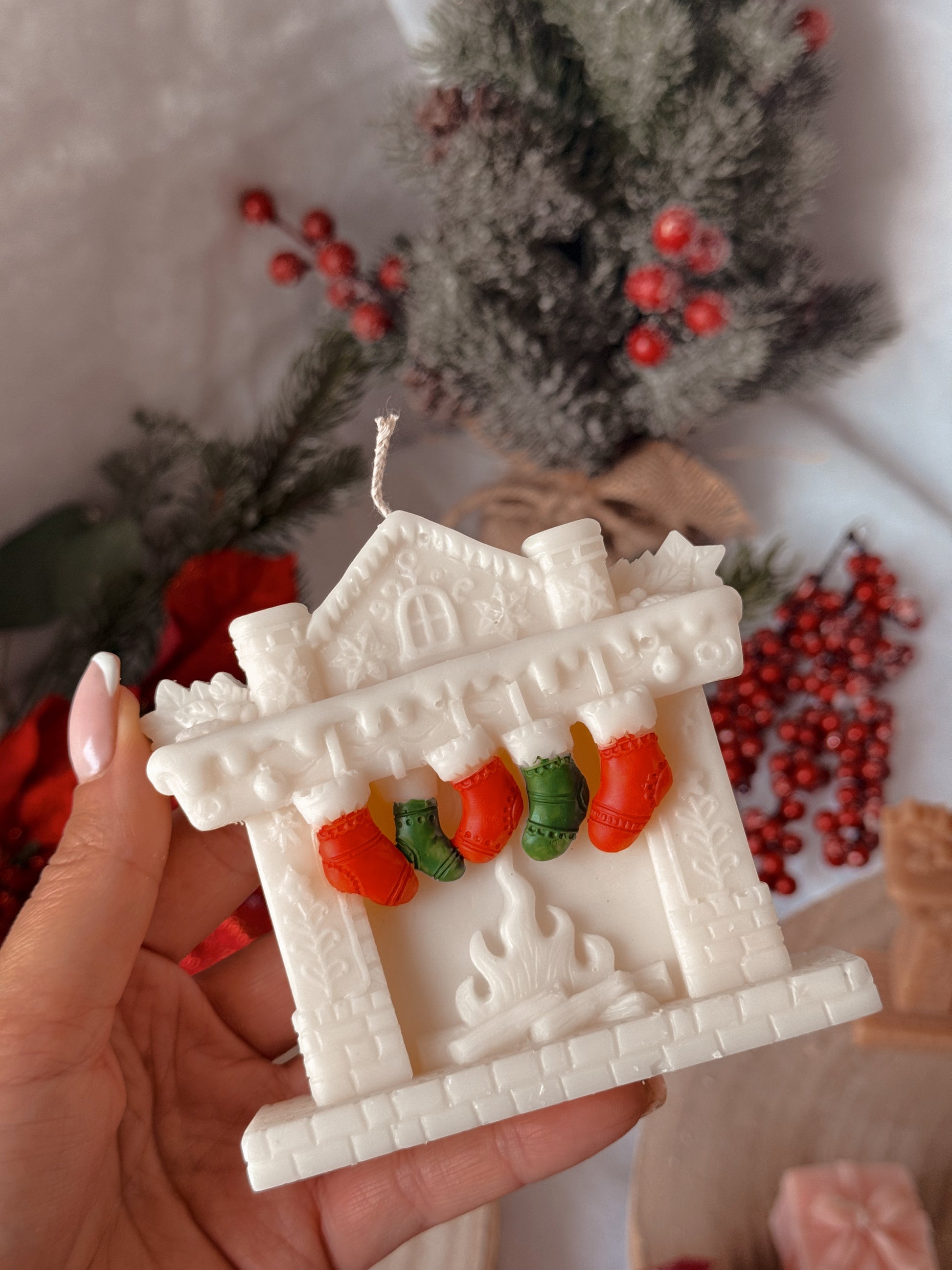 Bougie cheminées de Noël fait main en cire d’olive coloris et senteur au choix