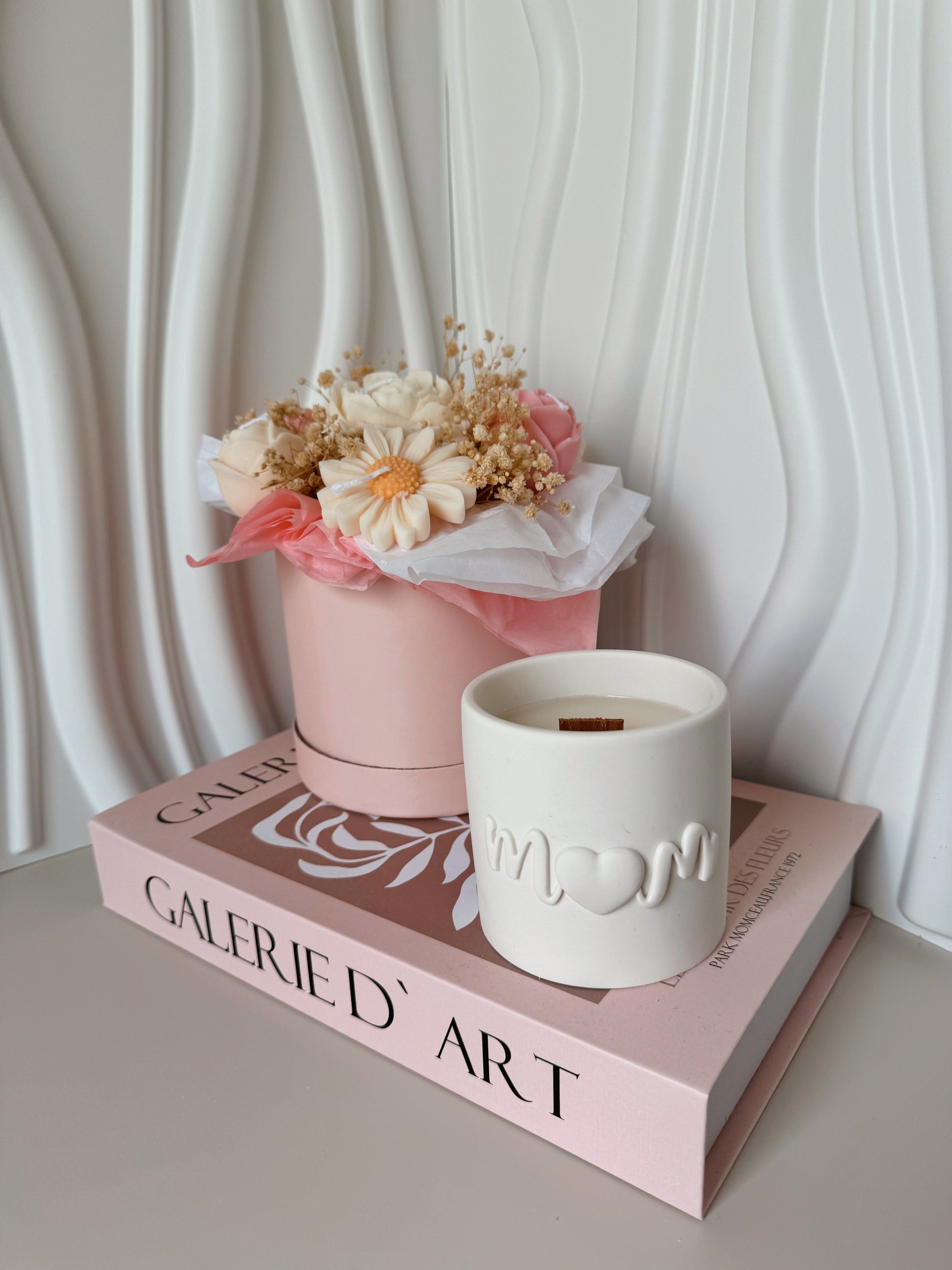 Bougie MOM pot fait main en jesmonite et cire de soja parfum au choix