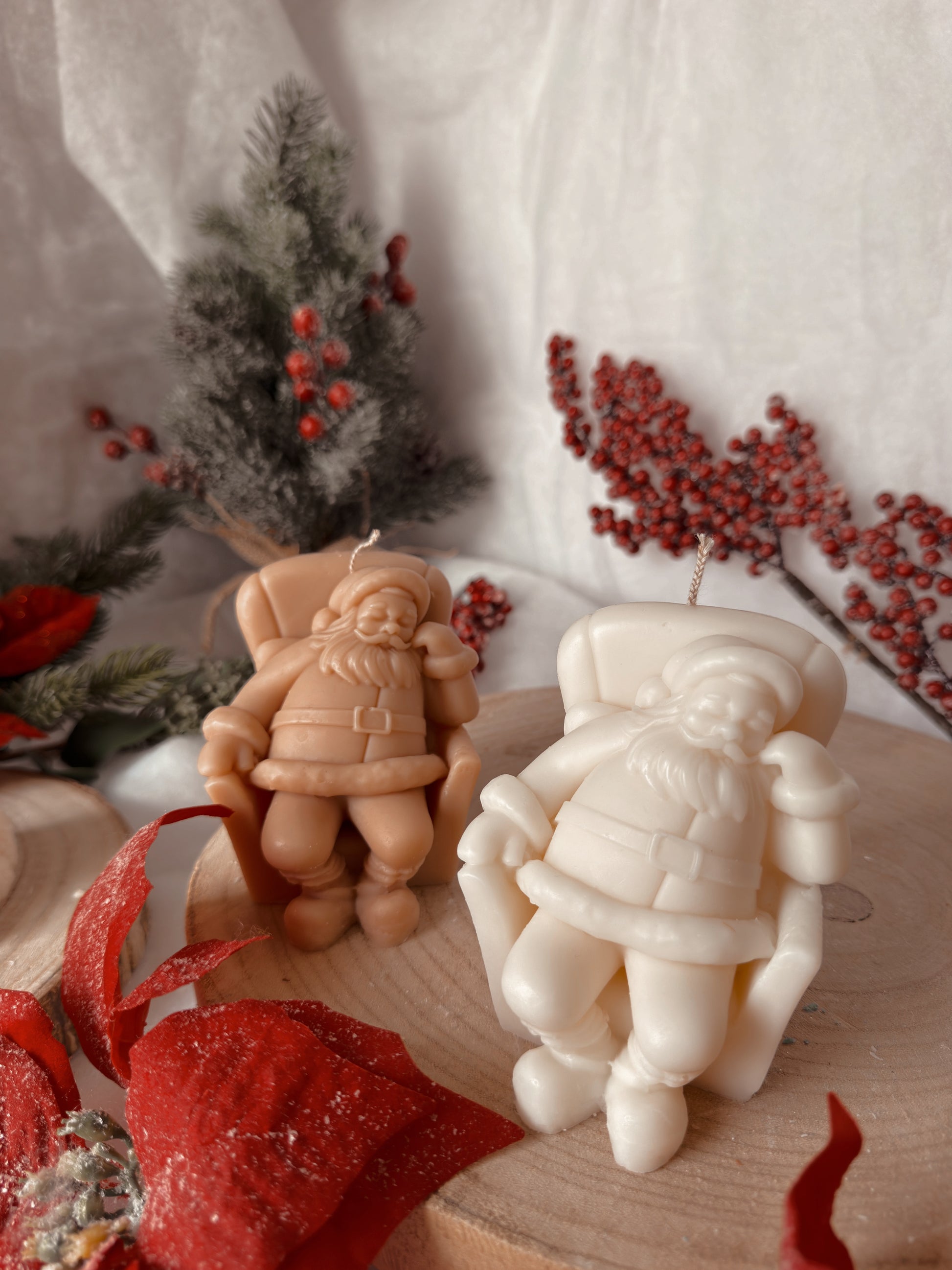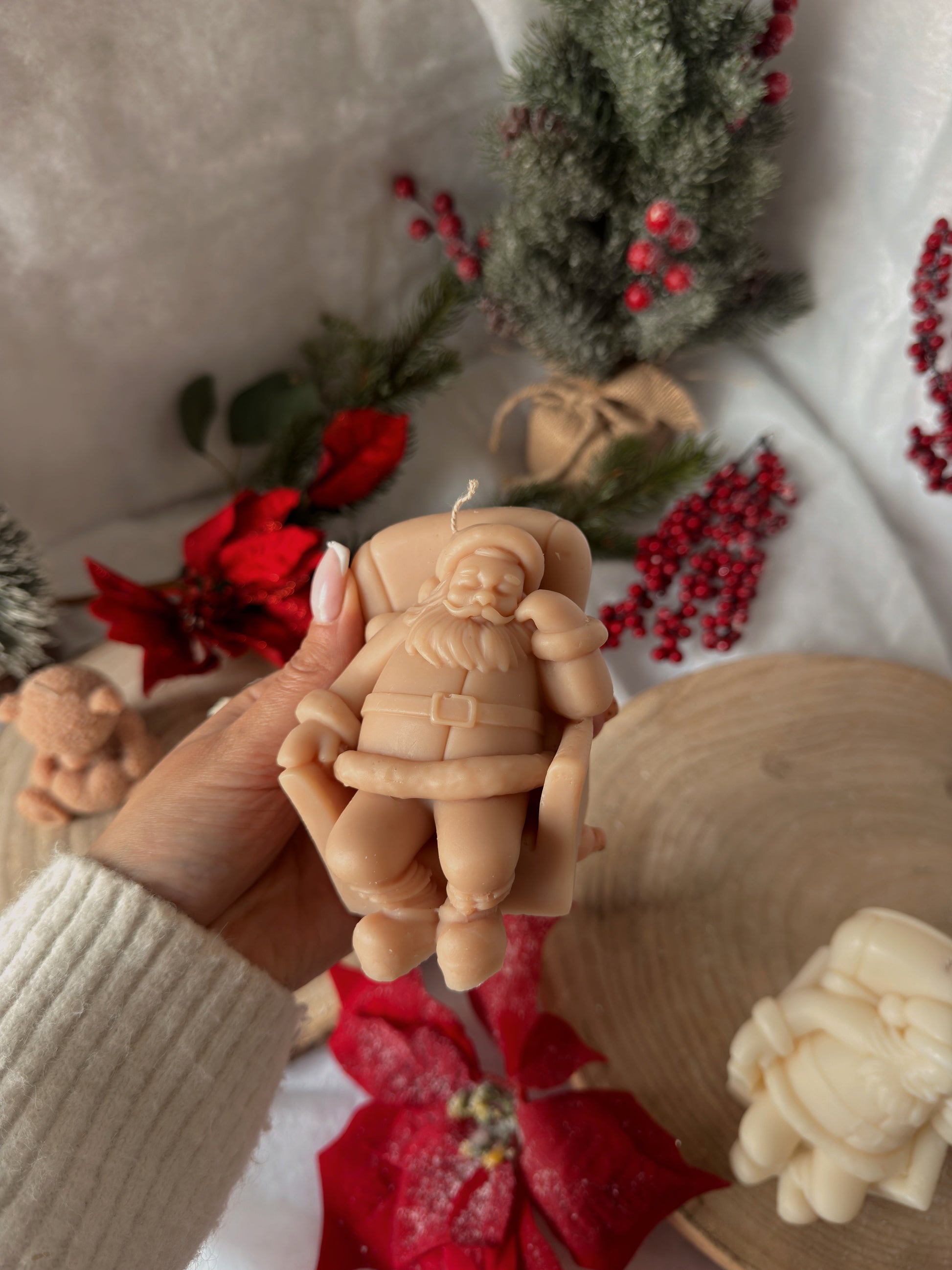 Bougie père Noël endormi fait main en cire d’olive coloris au choix