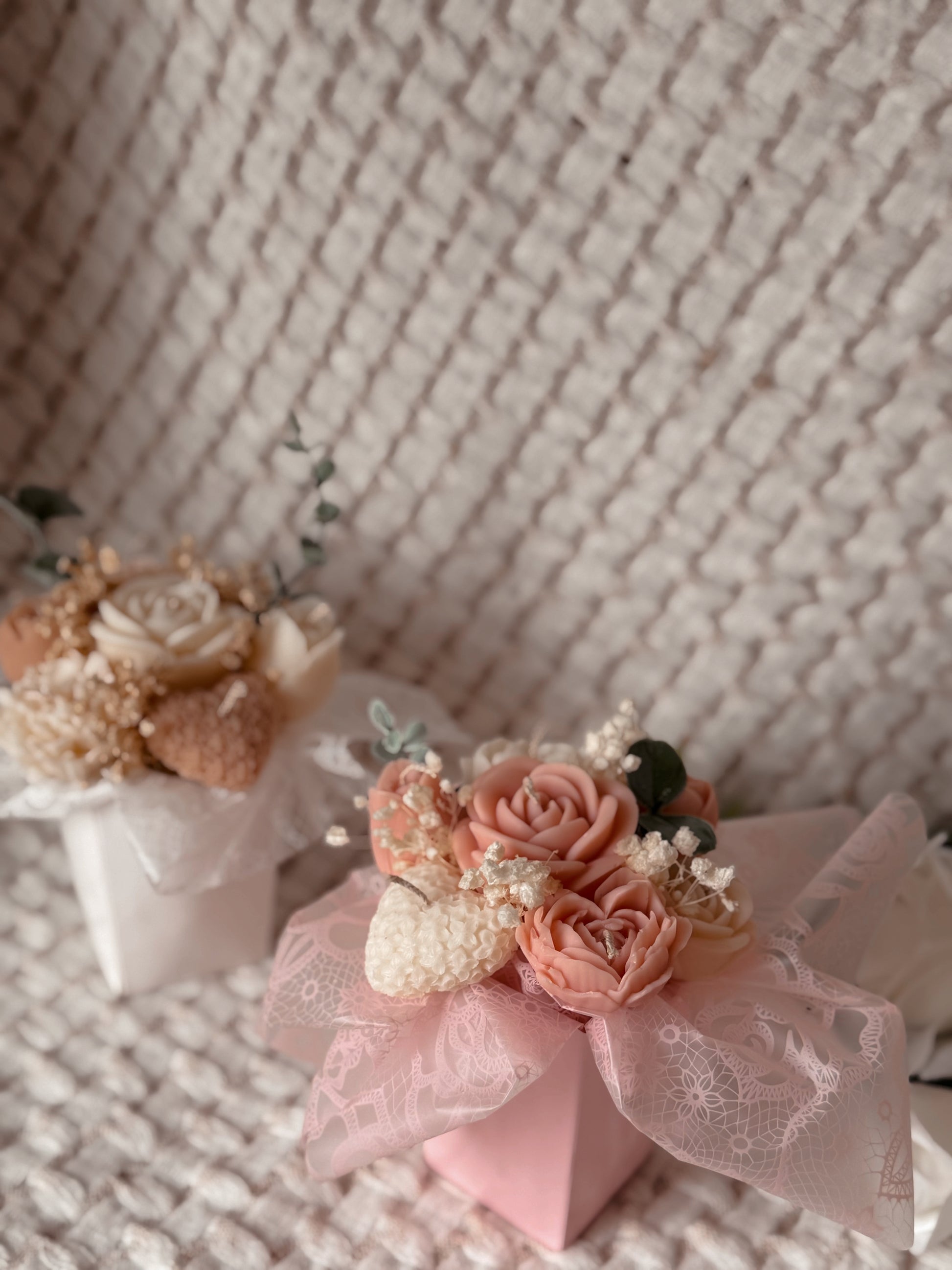 Pourquoi offrir un bouquet de fleurs qui se fanera lorsque l’on peut offrir un magnifique Bouquet de fleurs en cire d'olive et véritables fleurs séchées, vous avez la possibilité de profiter de sa puissance olfactive :